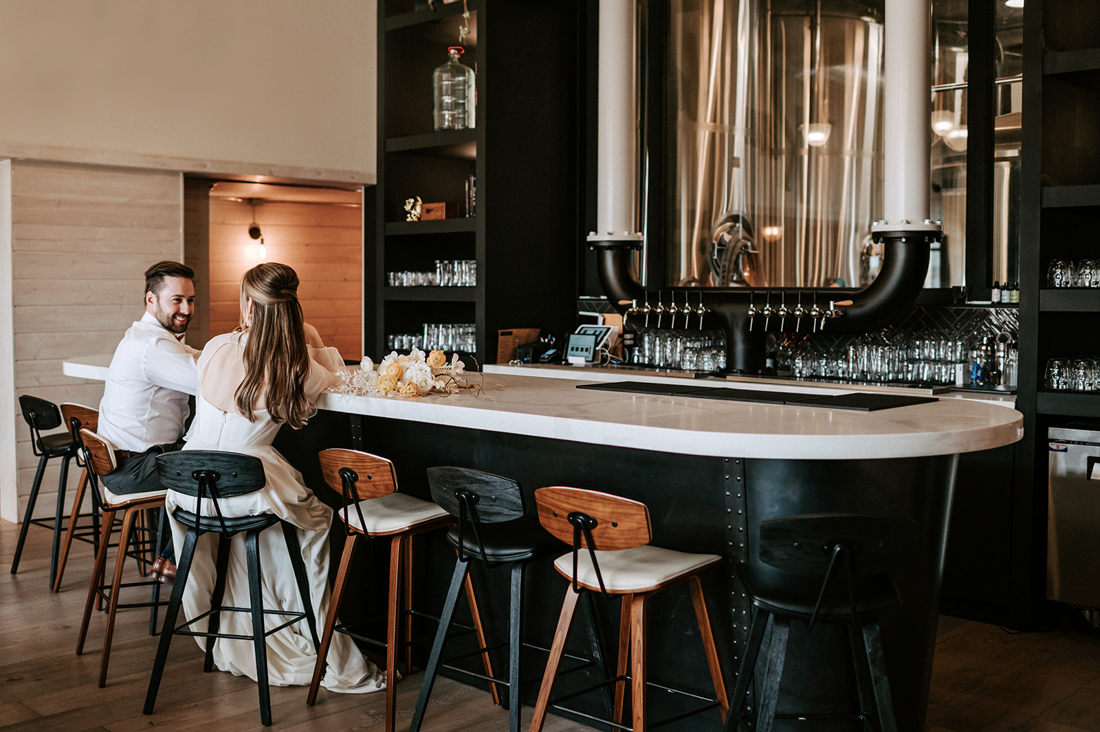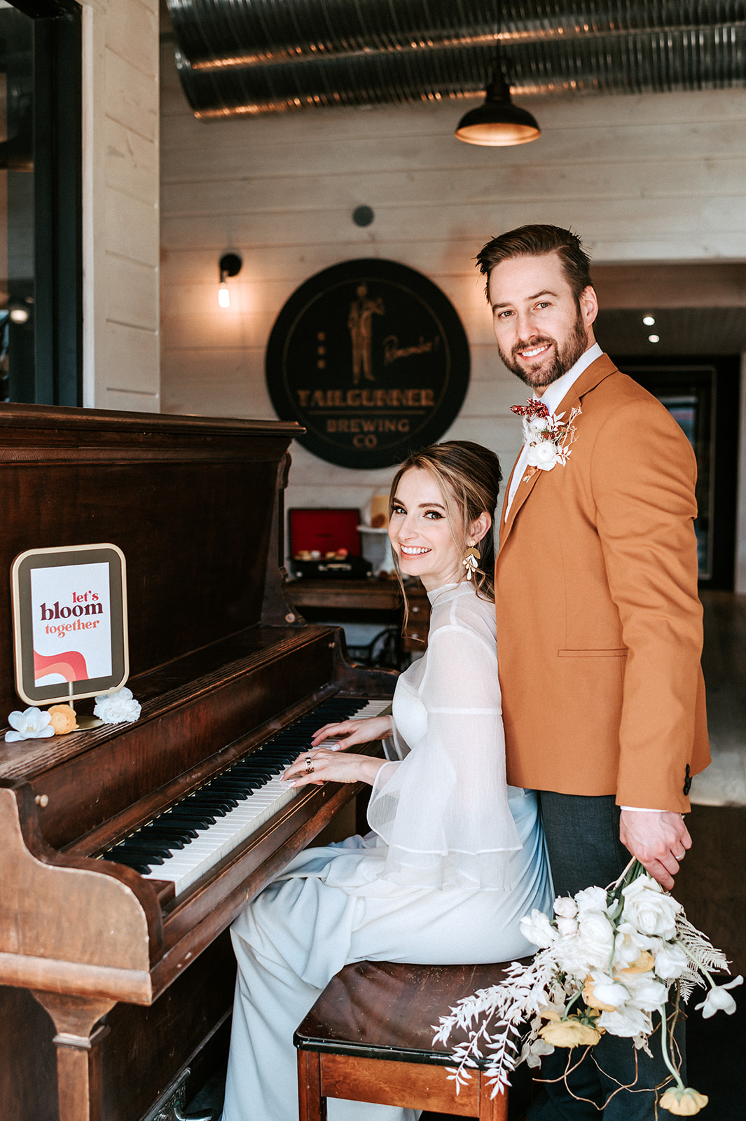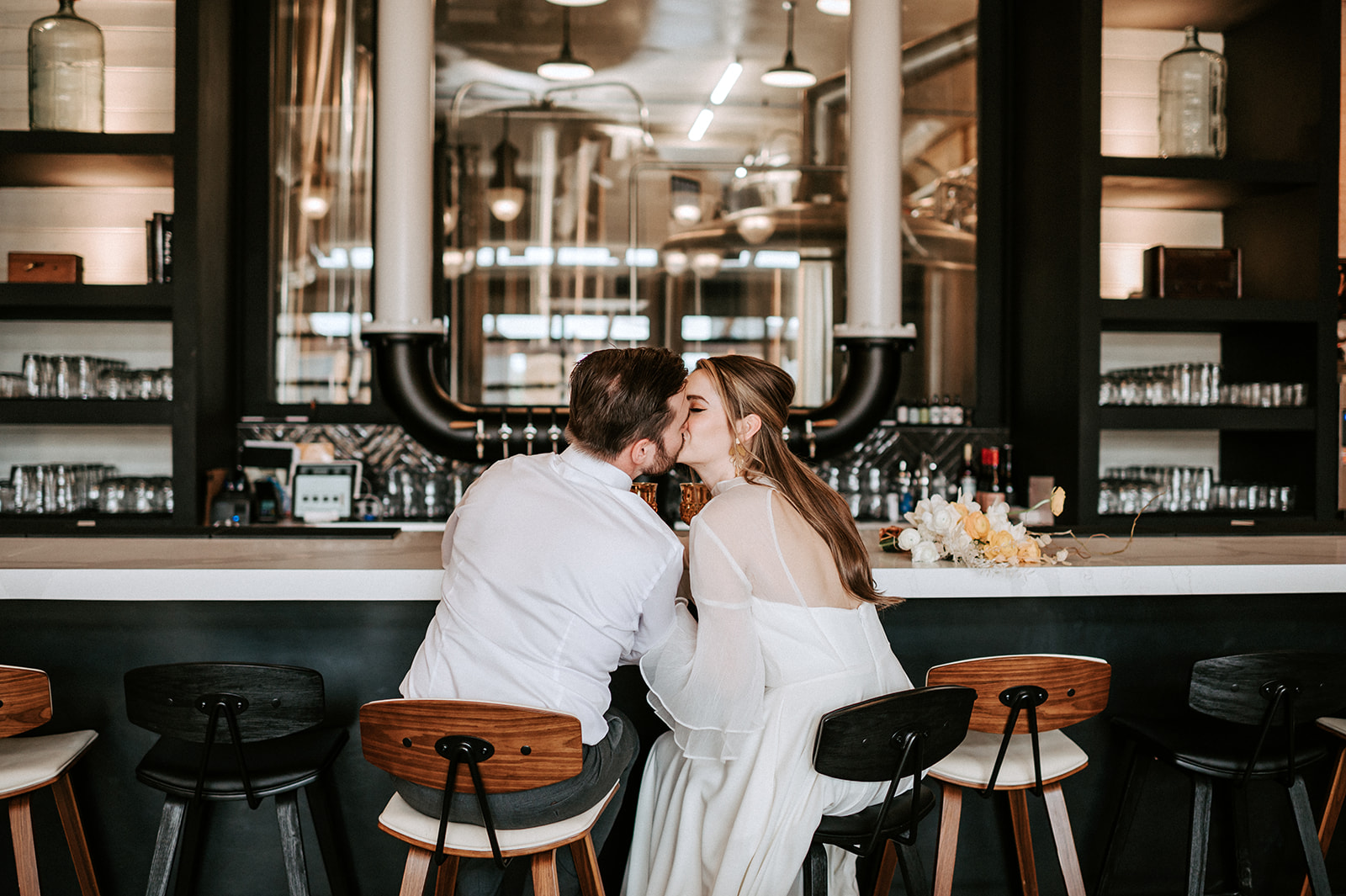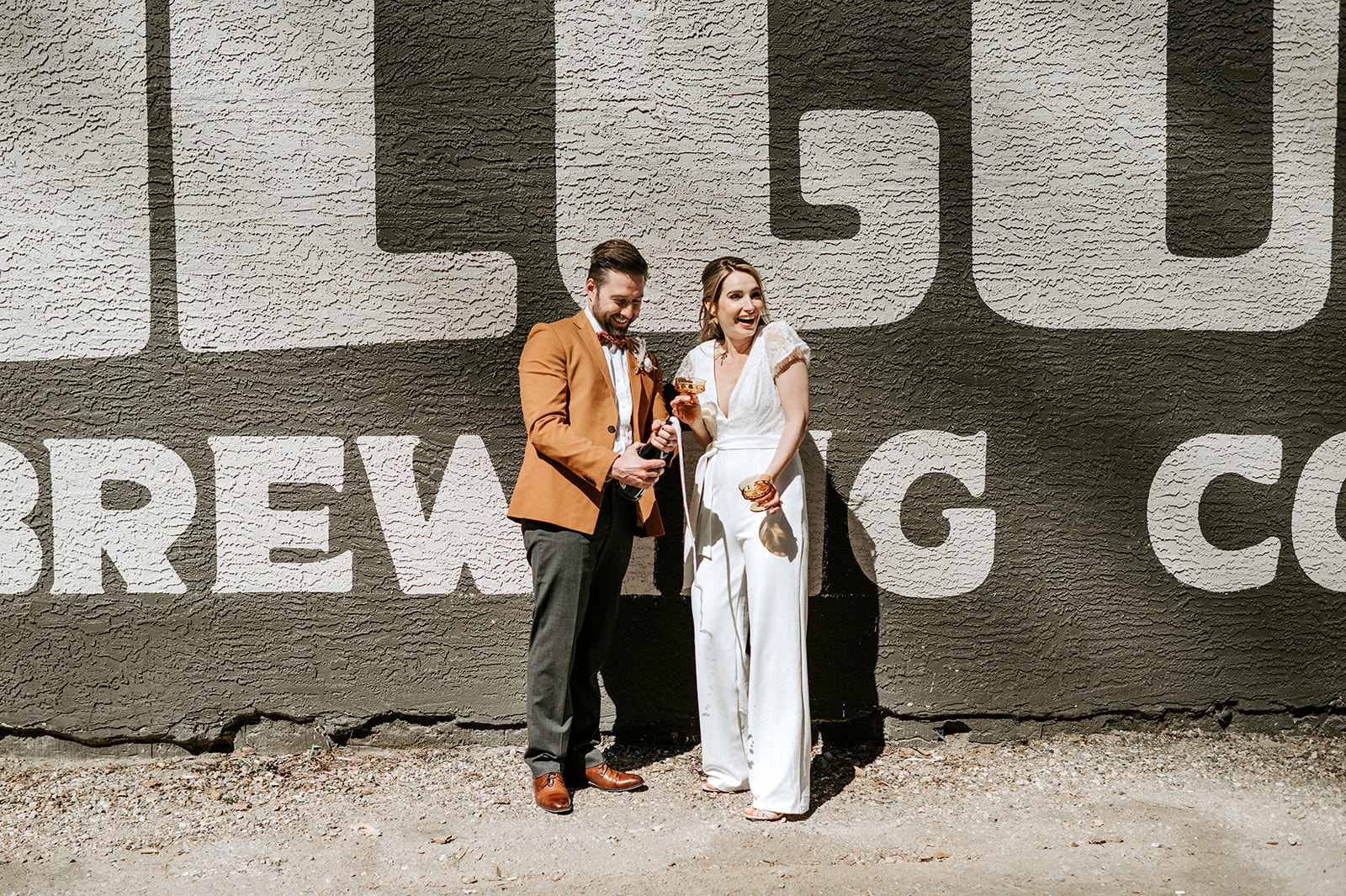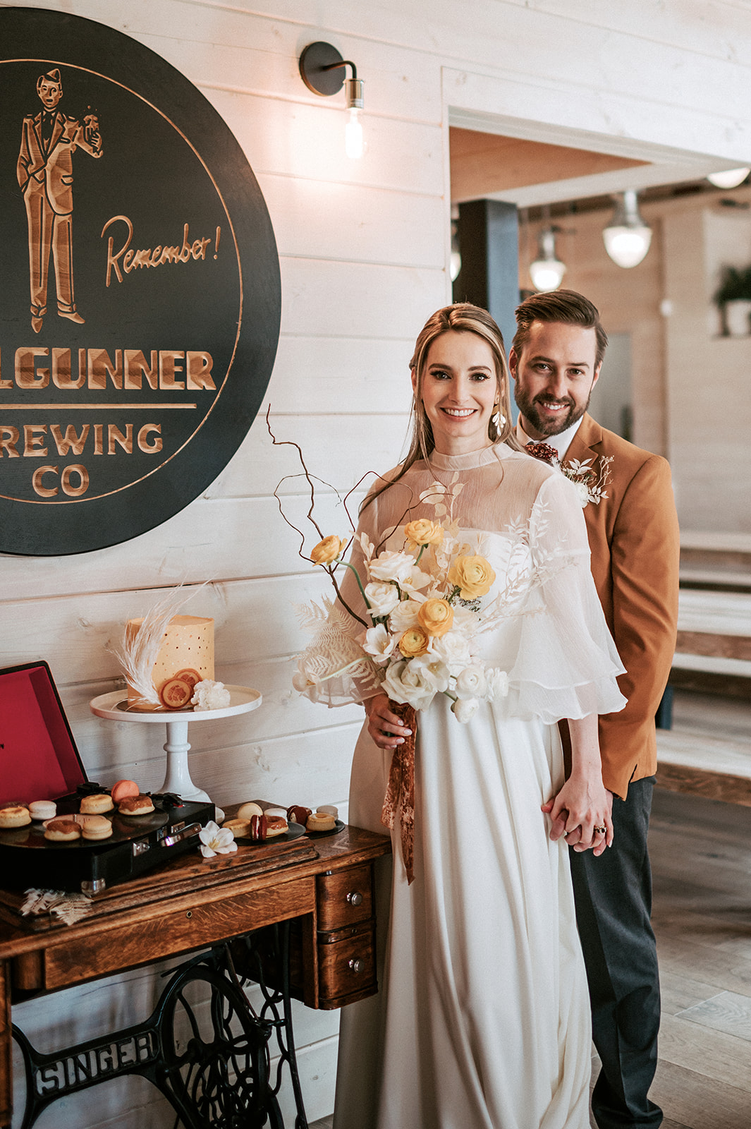 Modern love meets 70’s vintage funk! This retro inspired elopement designed by Melissa Alison Events and captured by Lily and Grey Photo Co., combined contemporary elements with vintage touches, at a fun new brewery venue in Calgary.
