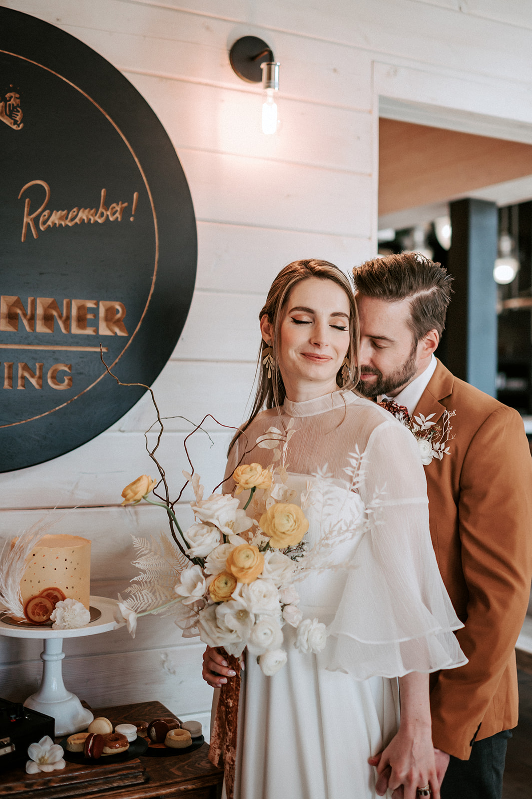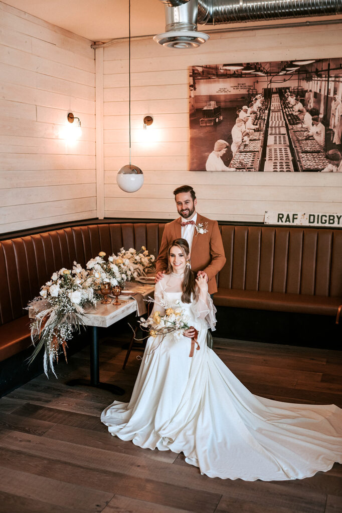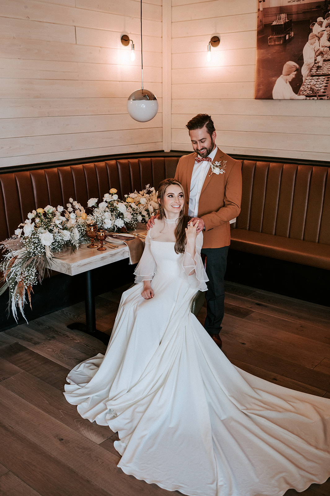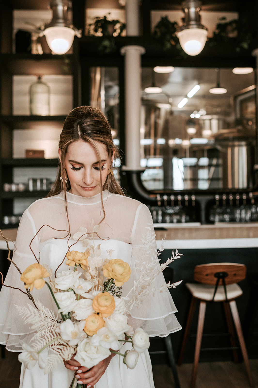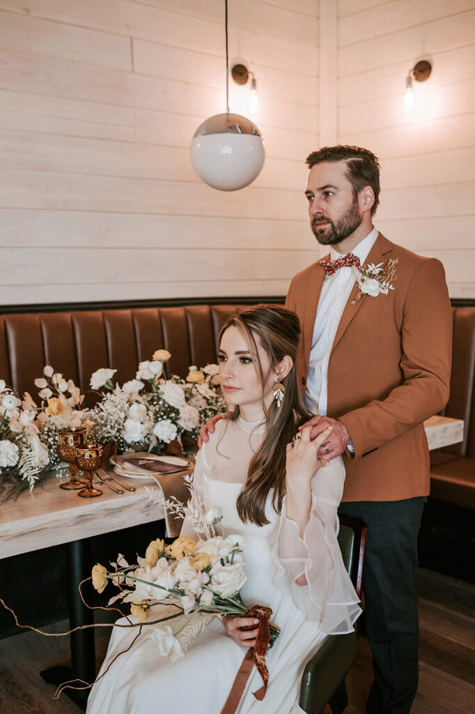 Modern love meets 70’s vintage funk! This retro inspired elopement designed by Melissa Alison Events and captured by Lily and Grey Photo Co., combined contemporary elements with vintage touches, at a fun new brewery venue in Calgary.