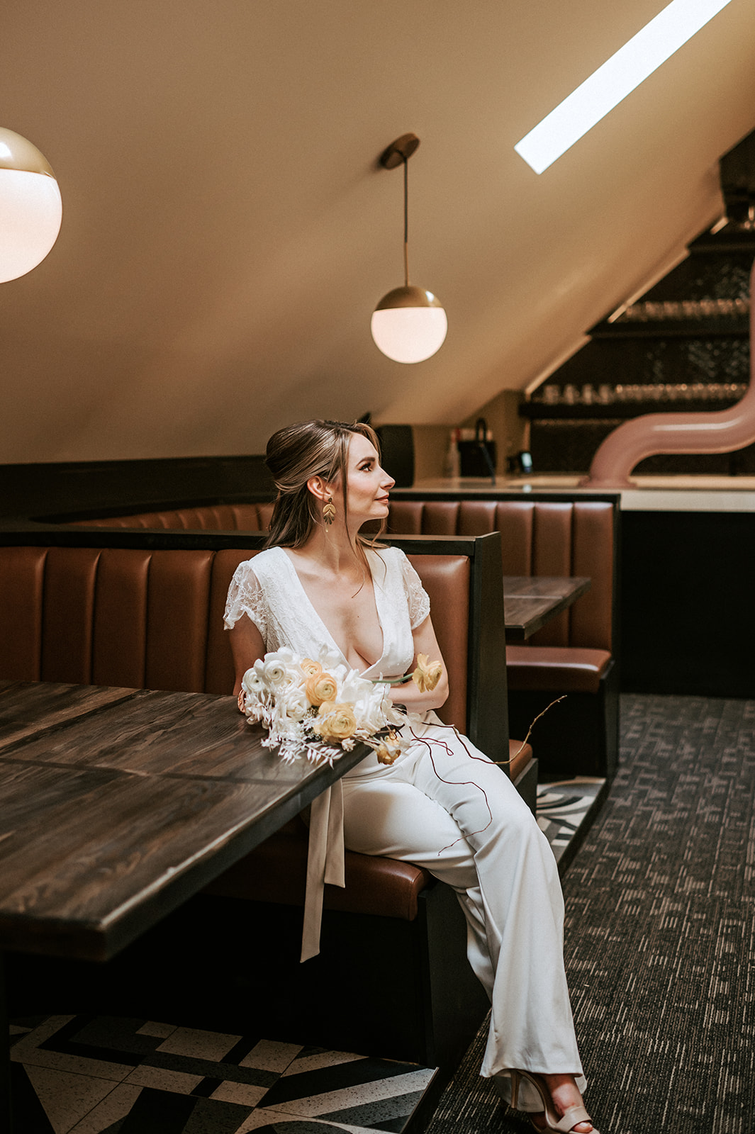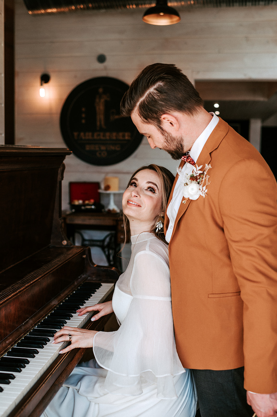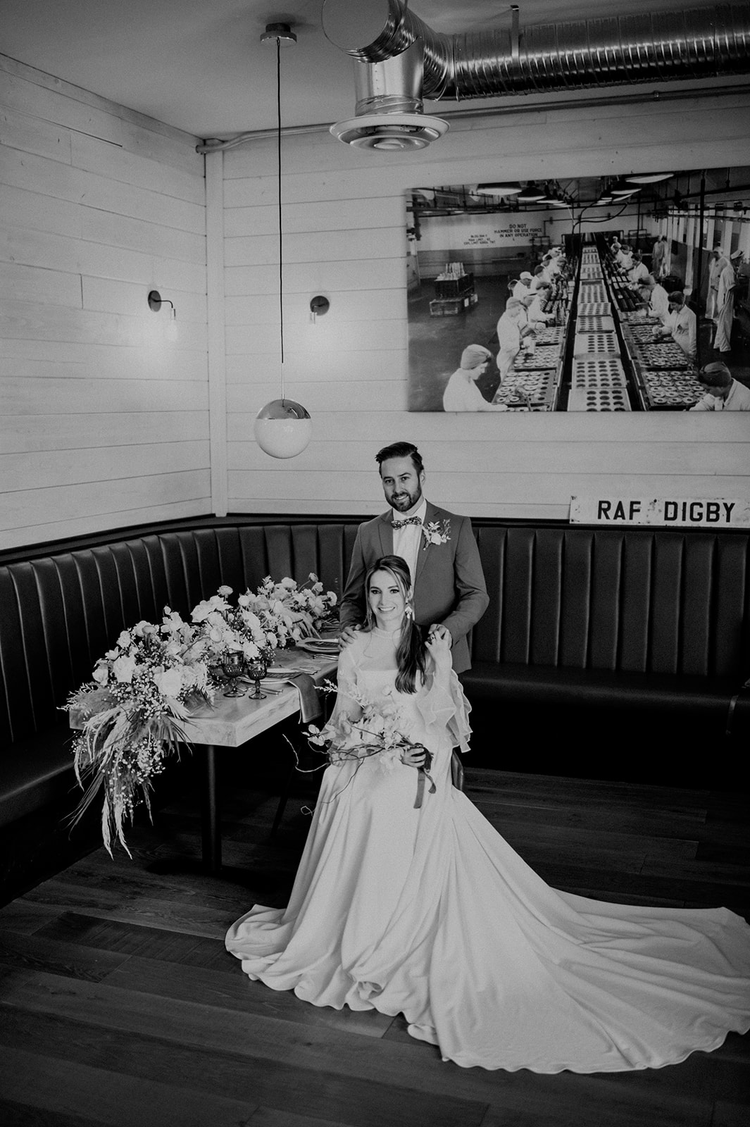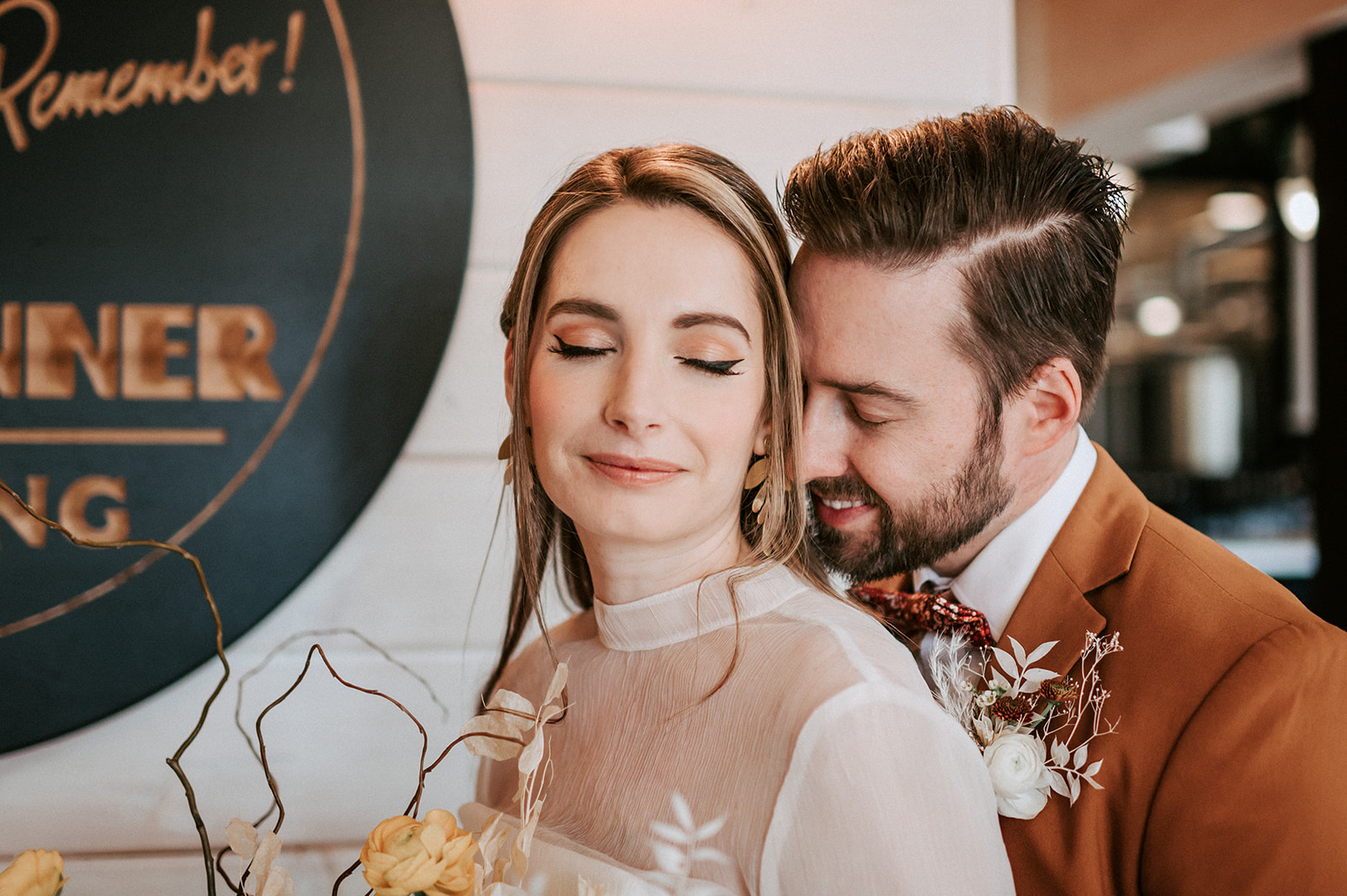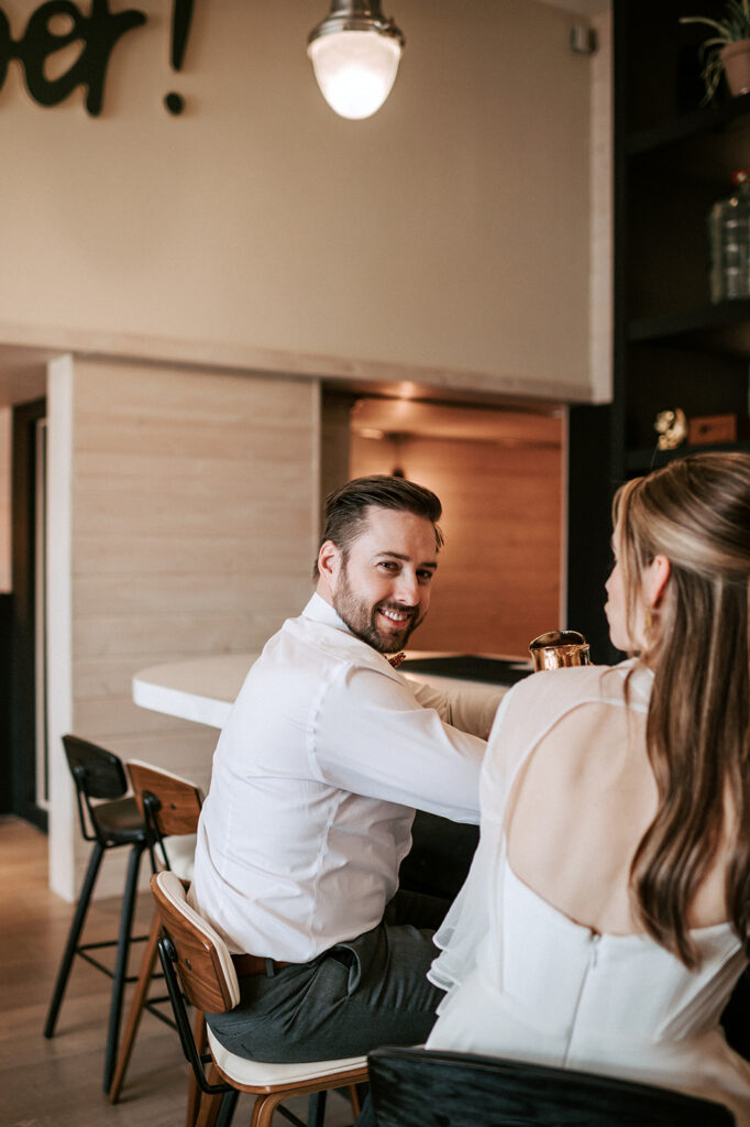 Modern love meets 70’s vintage funk! This retro inspired elopement designed by Melissa Alison Events and captured by Lily and Grey Photo Co., combined contemporary elements with vintage touches, at a fun new brewery venue in Calgary.