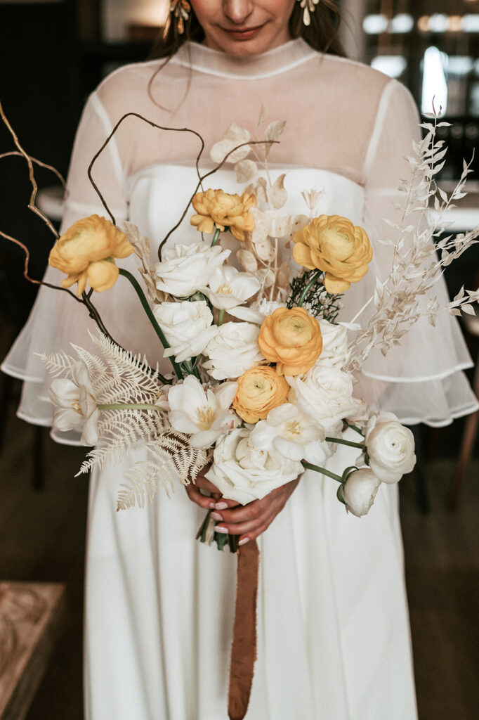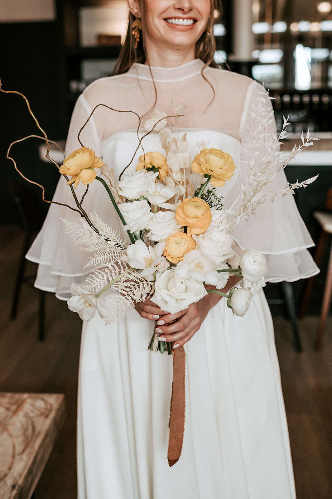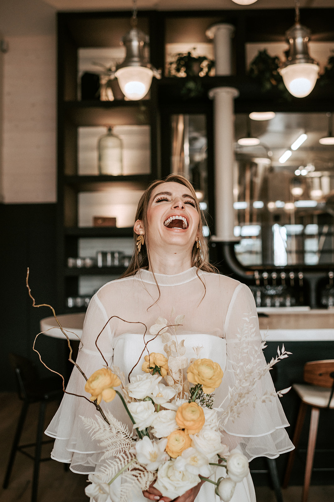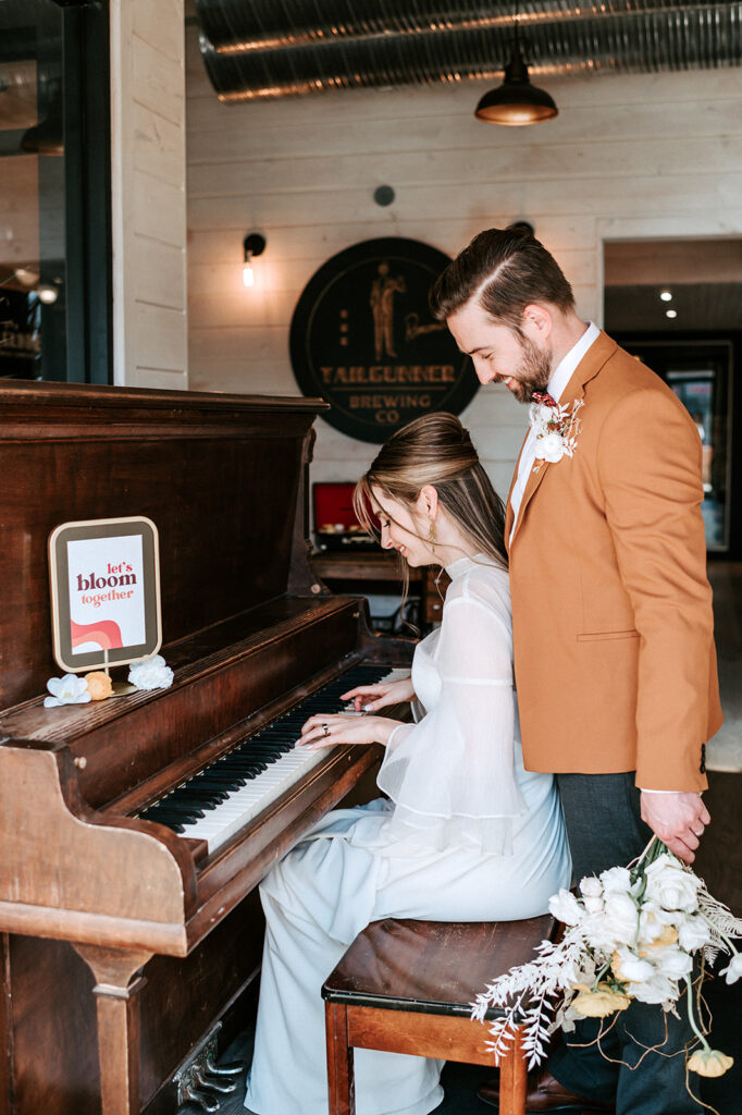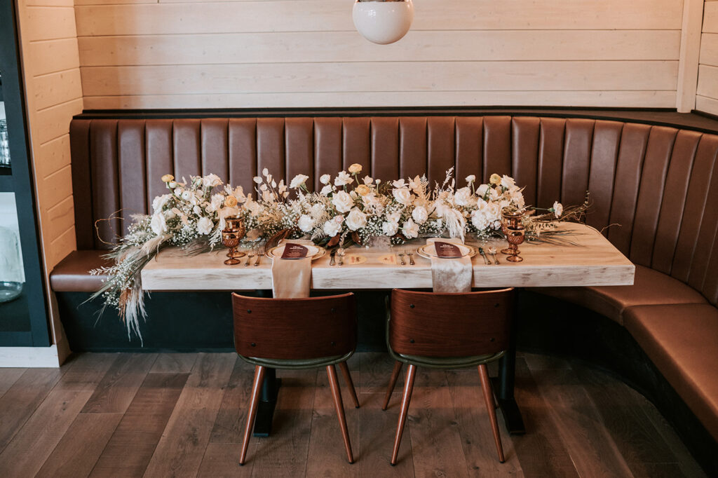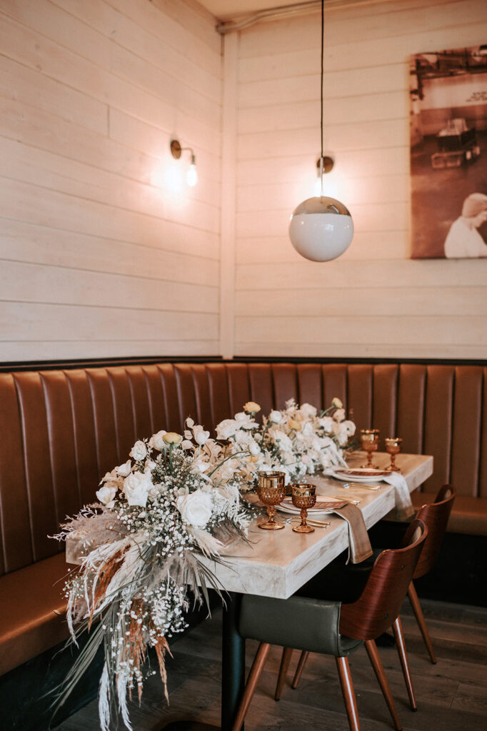 Modern love meets 70’s vintage funk! This retro inspired elopement designed by Melissa Alison Events and captured by Lily and Grey Photo Co., combined contemporary elements with vintage touches, at a fun new brewery venue in Calgary.