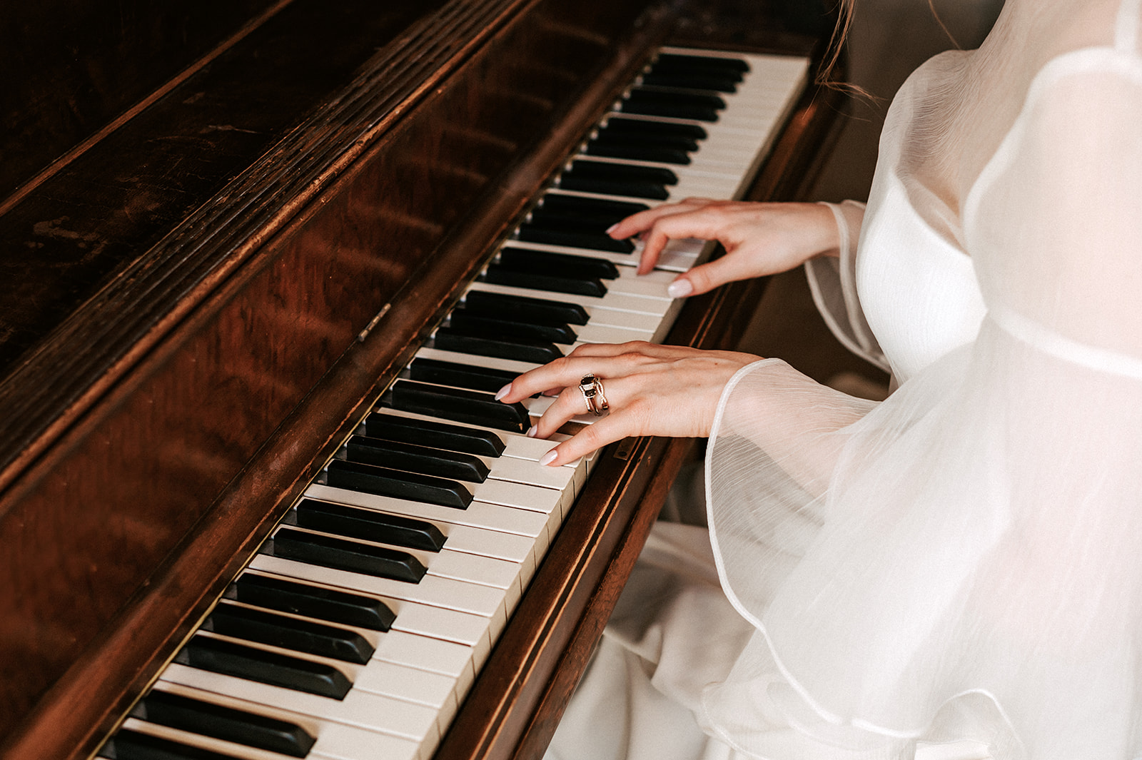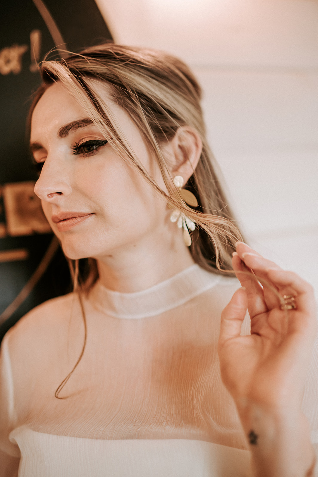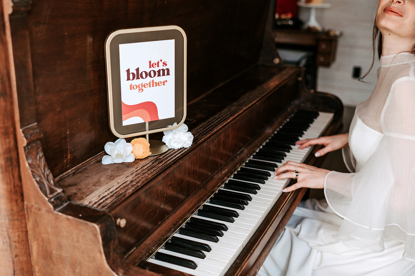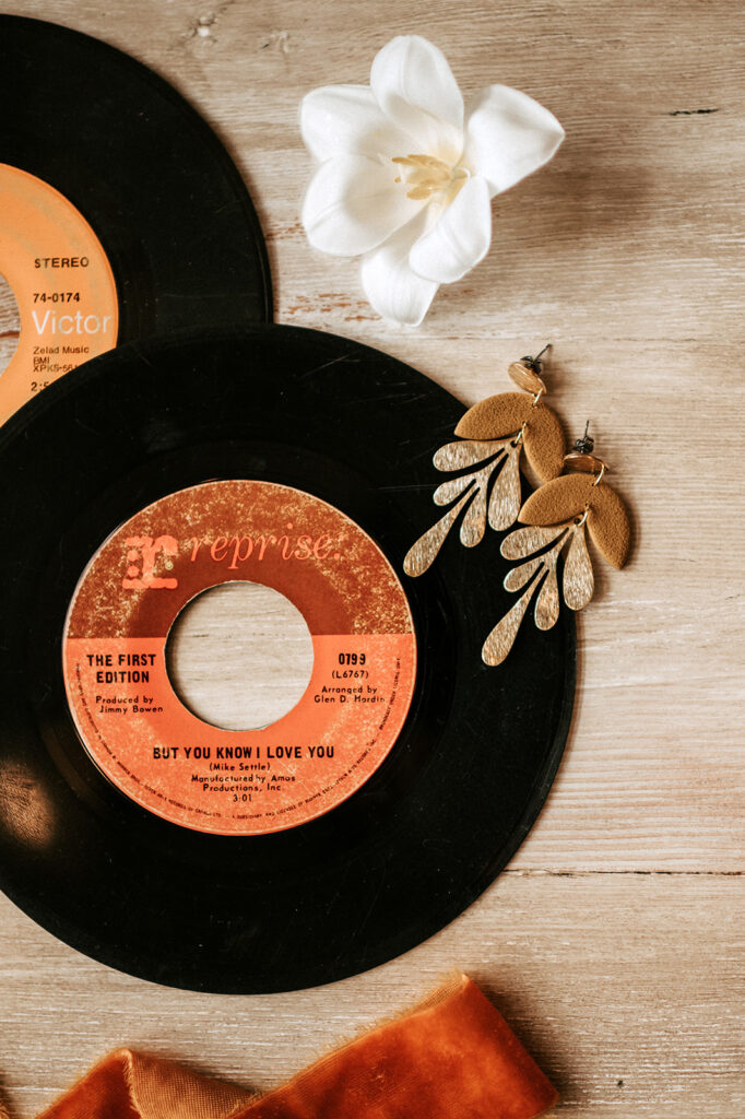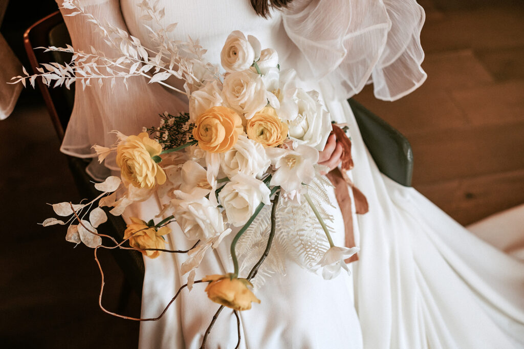 With it’s off-white crepe tiered bell sleeves and high neckline, the Sophia gown by Sistene, from Lovenote Bridal, provided just the right amount of 70 vibe. The groom wore a vibrant ochre suit jacket and a funky floral bow tie, while the bride wore clay and gold drop earrings. A triple set of stunning 70’s inspired diamond and quartz rings for our bride, and an intricate white and yellow gold wedding band for our groom added another touch of retro.