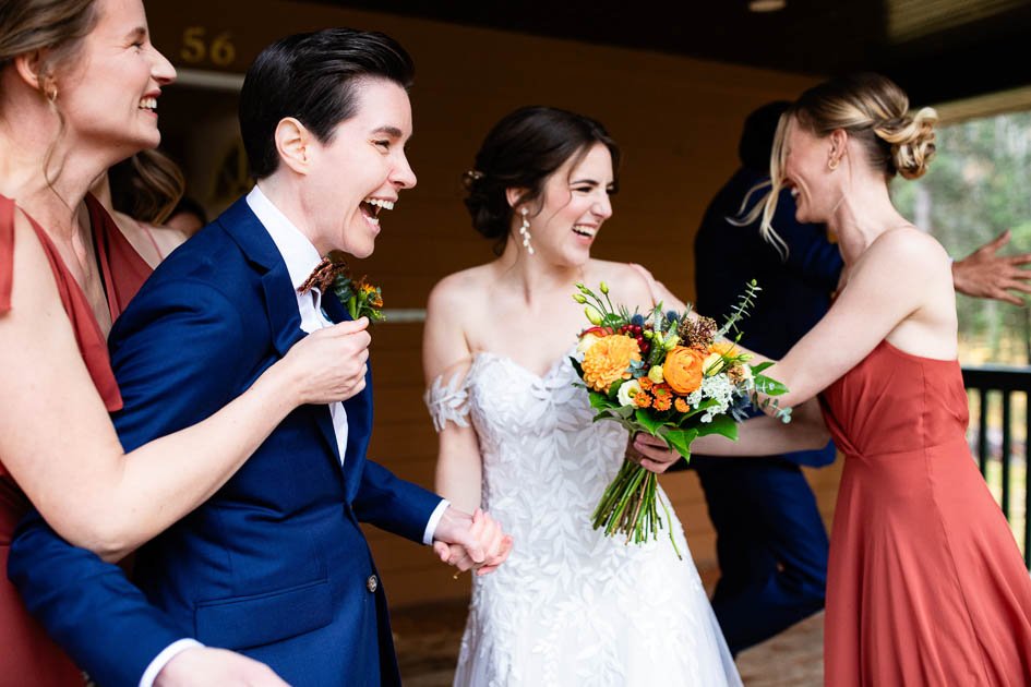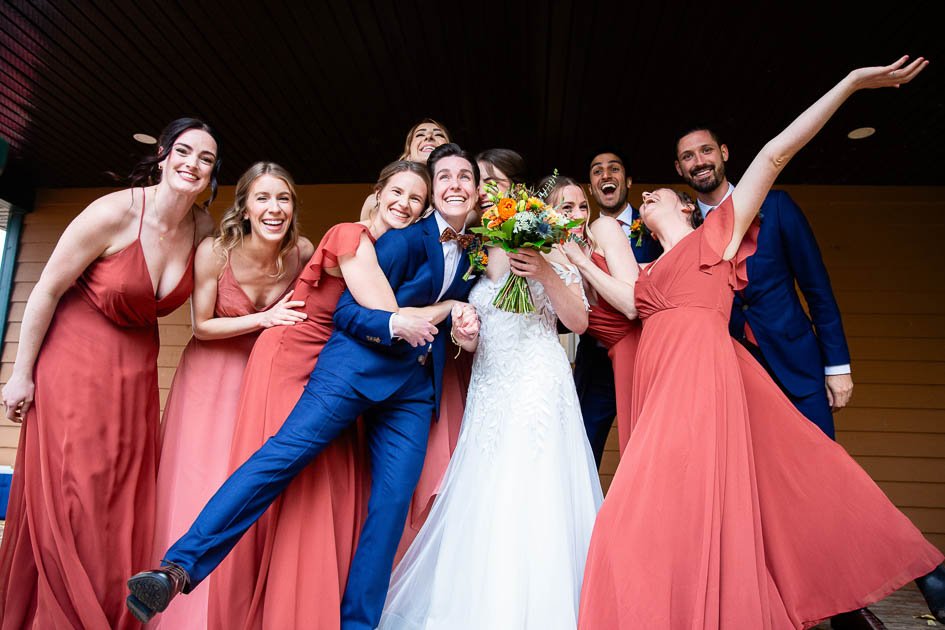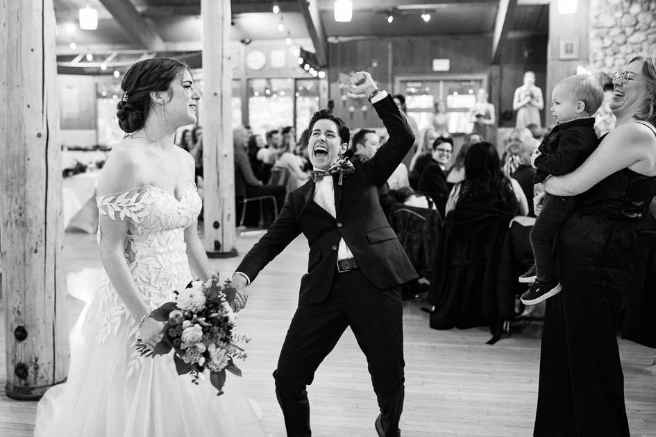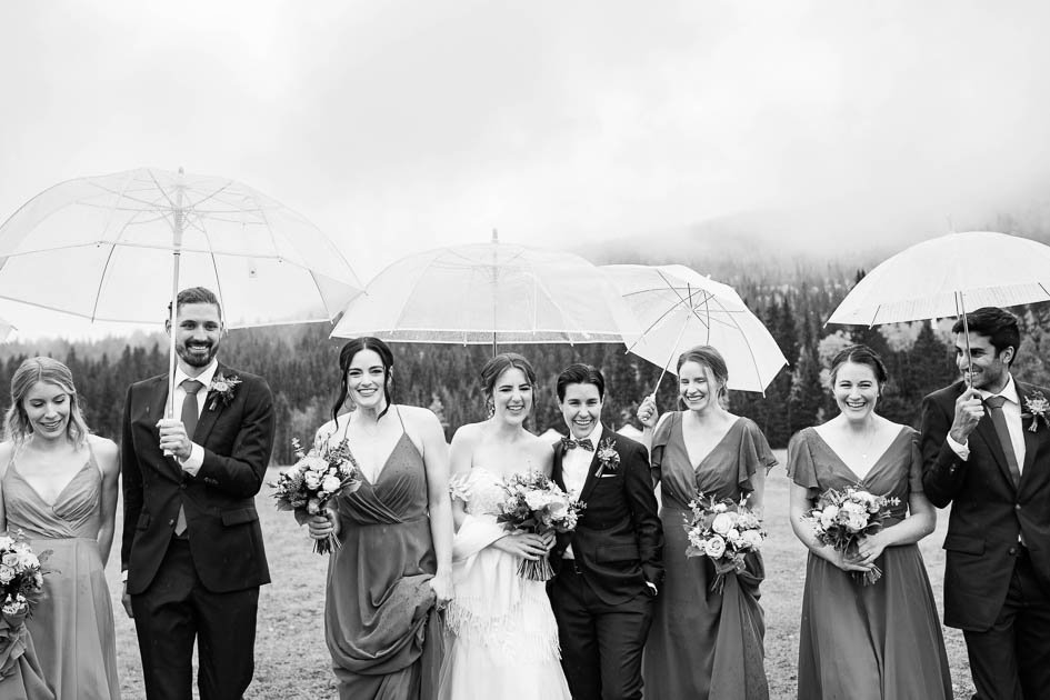This was probably the most emotional I’ve been at a wedding! Olivia and Kelly’s rainy day wedding at Camp Chief Hector had everyone reaching for the tissues. Despite the grey skies and rain, the couple embraced the weather, and celebrated each other in the most beautiful, sincere, and heartfelt ceremony. Olivia and Kelly chose this warm, inviting venue as camp held a special place in both of their lives. Hearing stories shared by close friends and family truly highlighted how loved these two are. Forever grateful that we were able to witness such a beautiful day.