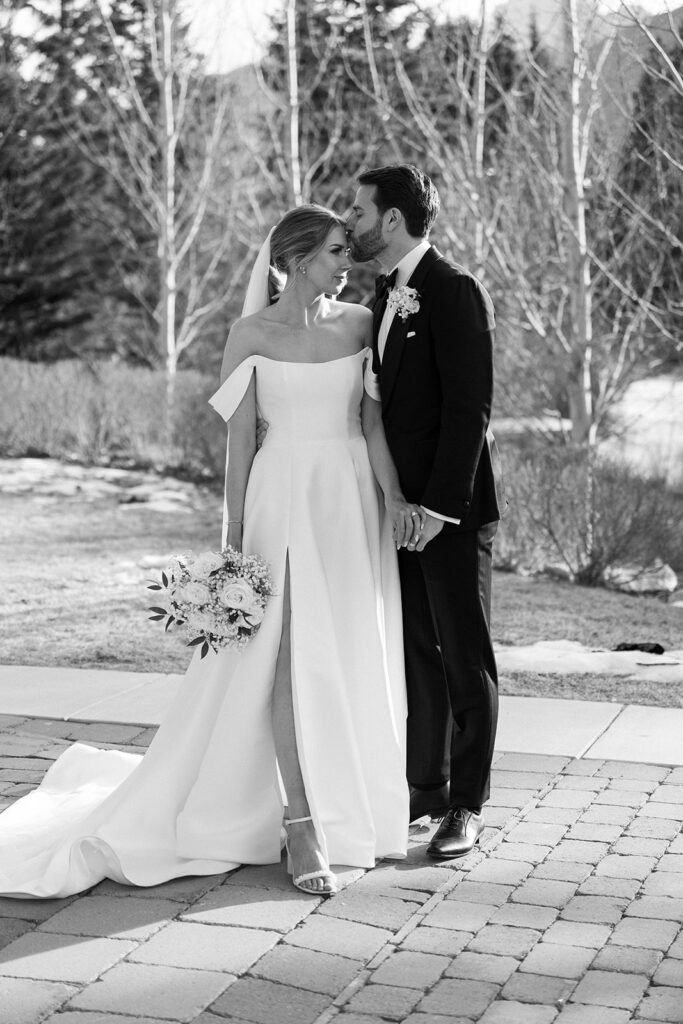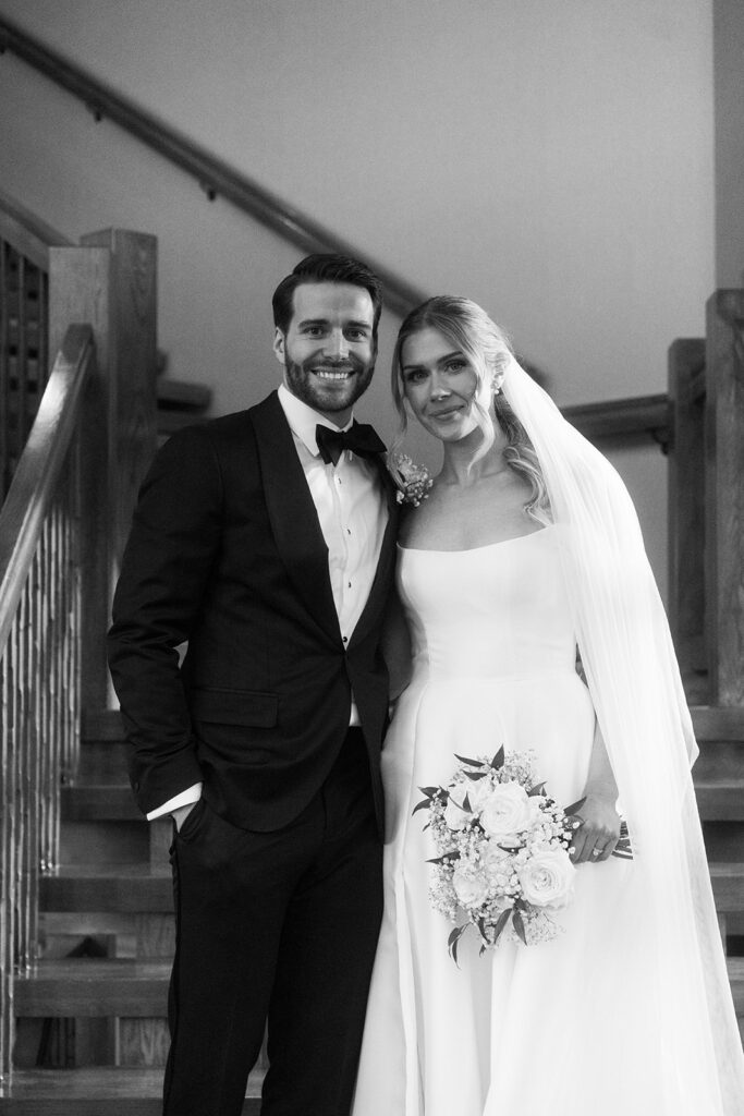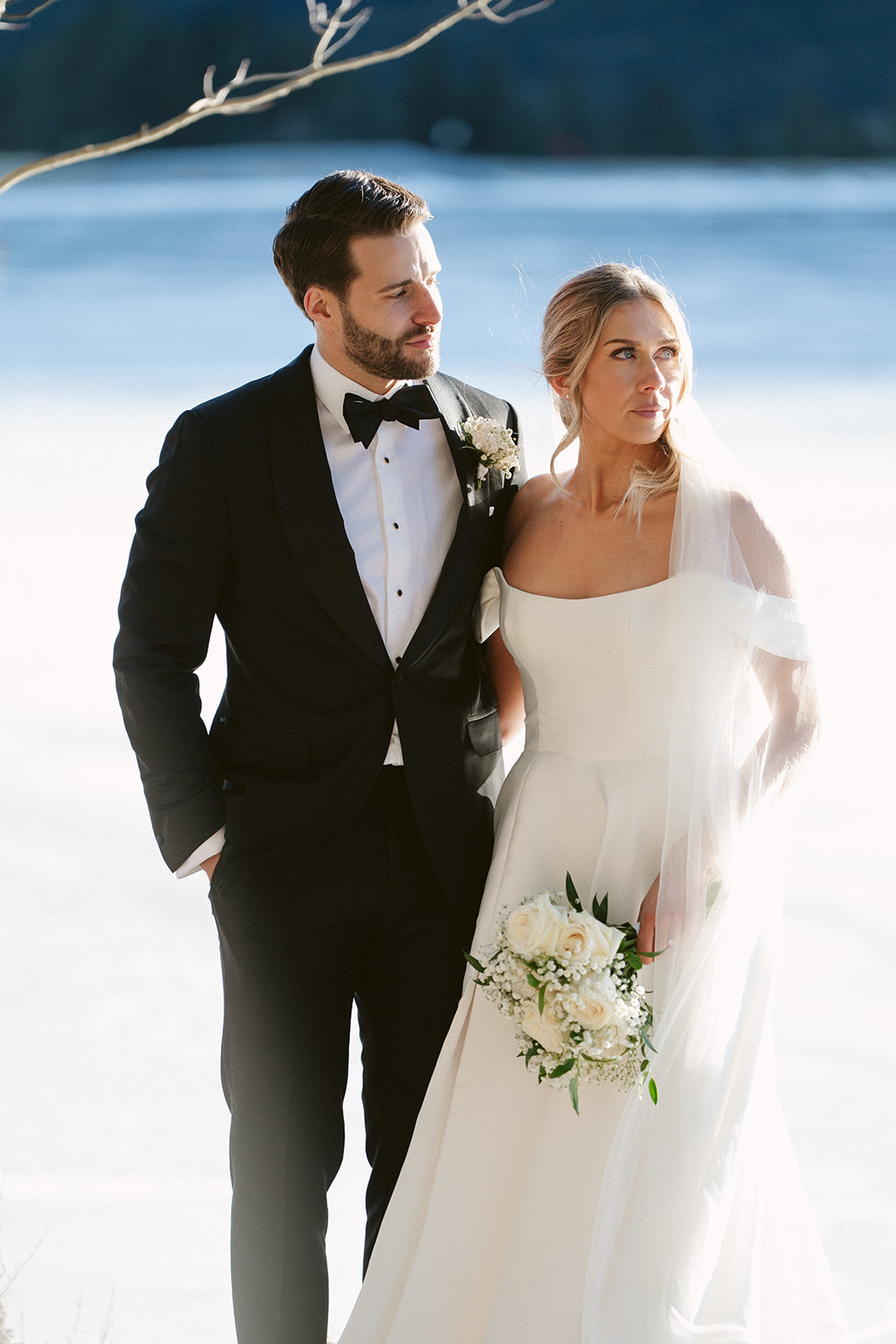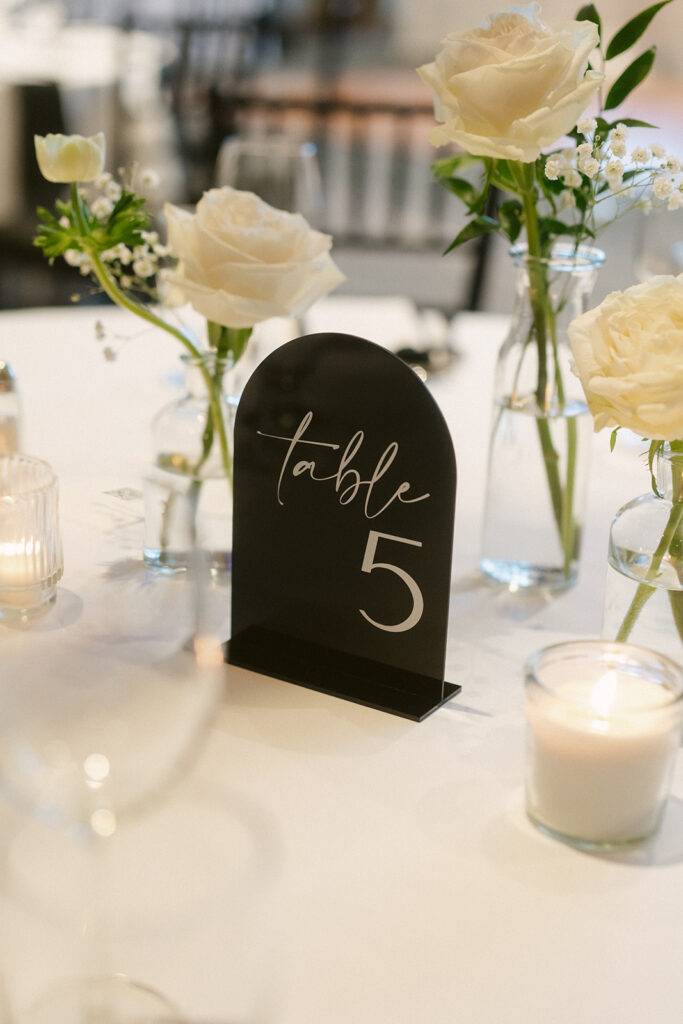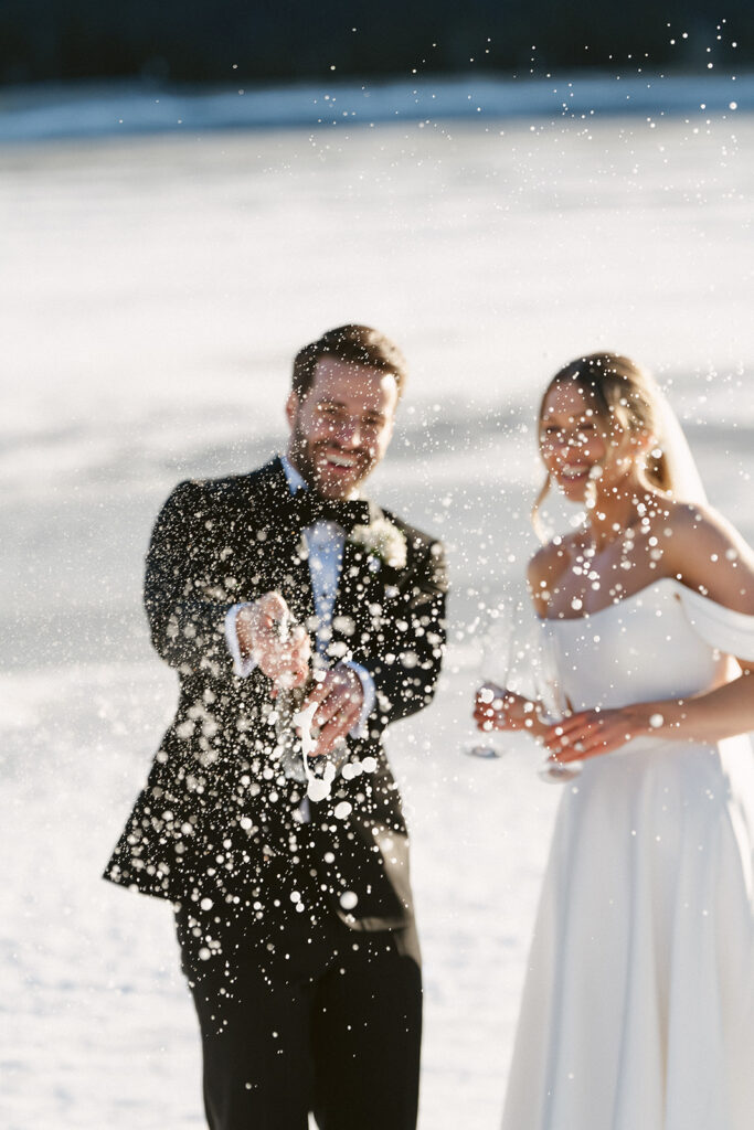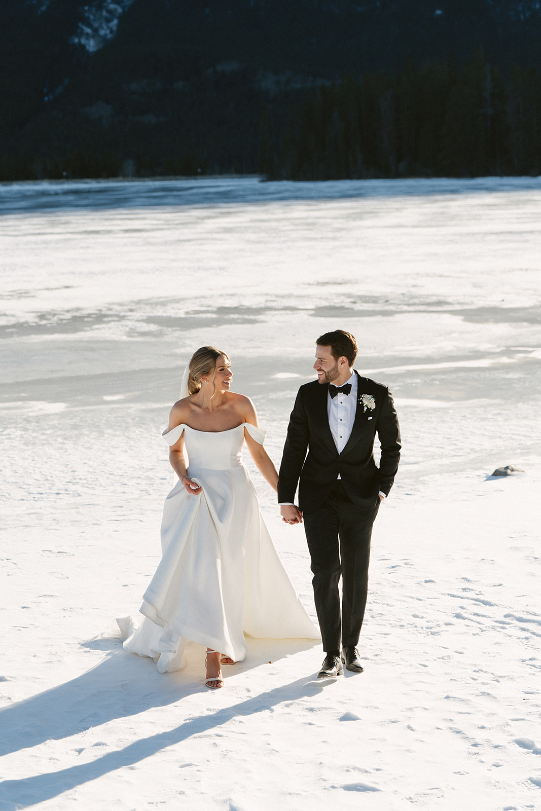 Brooke and Mike’s wedding was held with a stunning Rocky Mountain backdrop behind them, at the iconic Malcolm Hotel in Canmore. Their ceremony was filled with sunlight, and a whole lot of happy tears. Their ceremony took place beneath a romantic floral arch, with black elegant chairs setting the tone for a timeless wedding day. Their design was minimal yet elegant, and timeless with fresh greenery, ivory blooms, and touches of black and white – thoughtful details that let the beauty of Canmore shine.