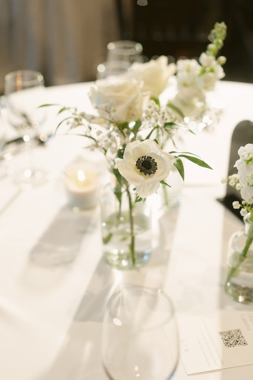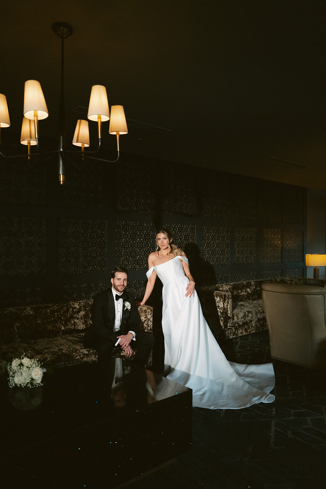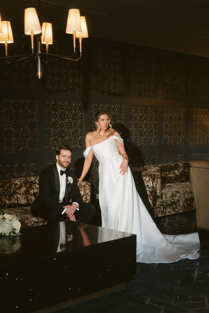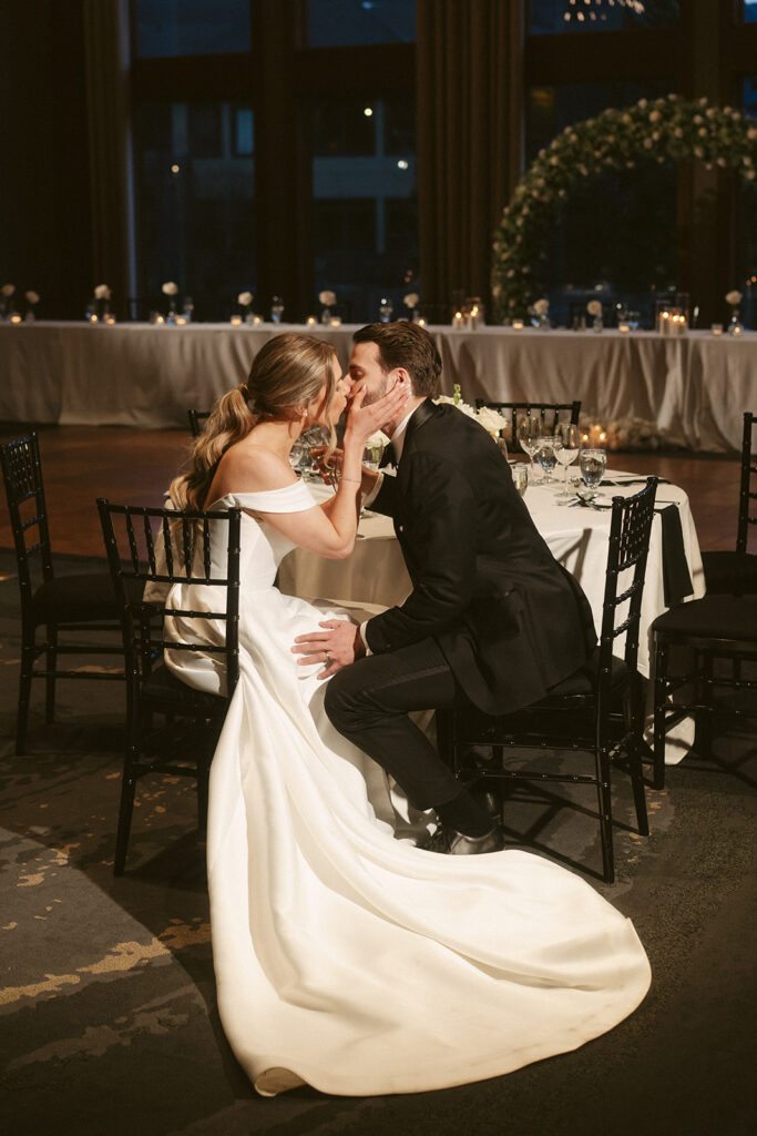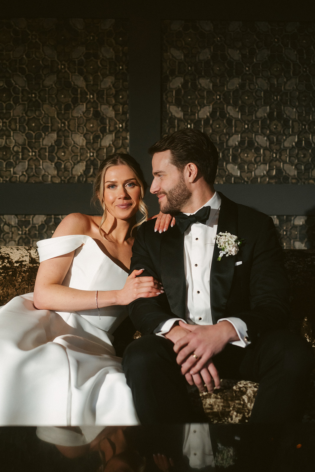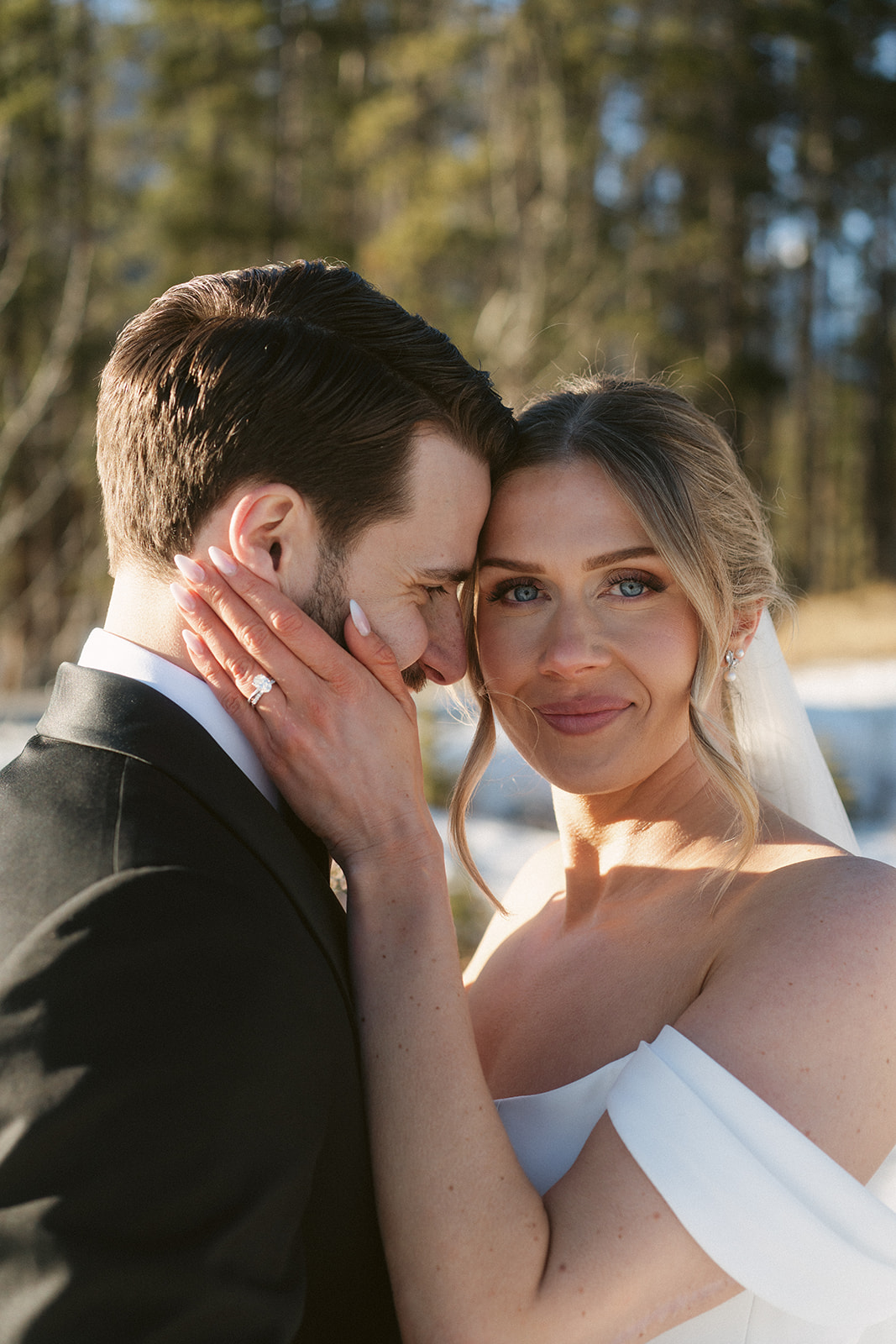 Brooke and Mike’s wedding was held with a stunning Rocky Mountain backdrop behind them, at the iconic Malcolm Hotel in Canmore. Their ceremony was filled with sunlight, and a whole lot of happy tears. Their ceremony took place beneath a romantic floral arch, with black elegant chairs setting the tone for a timeless wedding day. Their design was minimal yet elegant, and timeless with fresh greenery, ivory blooms, and touches of black and white – thoughtful details that let the beauty of Canmore shine.
